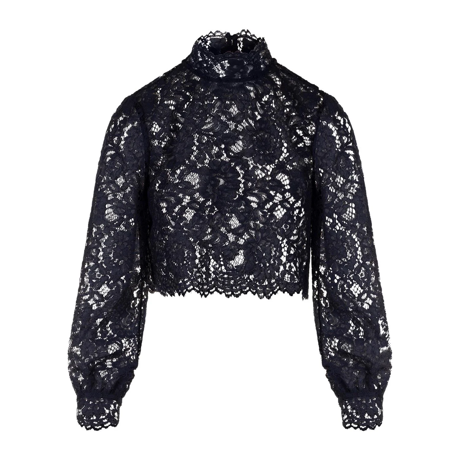 Chiarina Blouse fra Urban Pioneers. En elegant blondebluse med cropped lengde og sofistikert høy hals. De voluminøse ermene og den delikate strukturen gir et feminint og eksklusivt uttrykk. Perfekt til både fest og pyntede anledninger når du vil skille deg ut med stil.