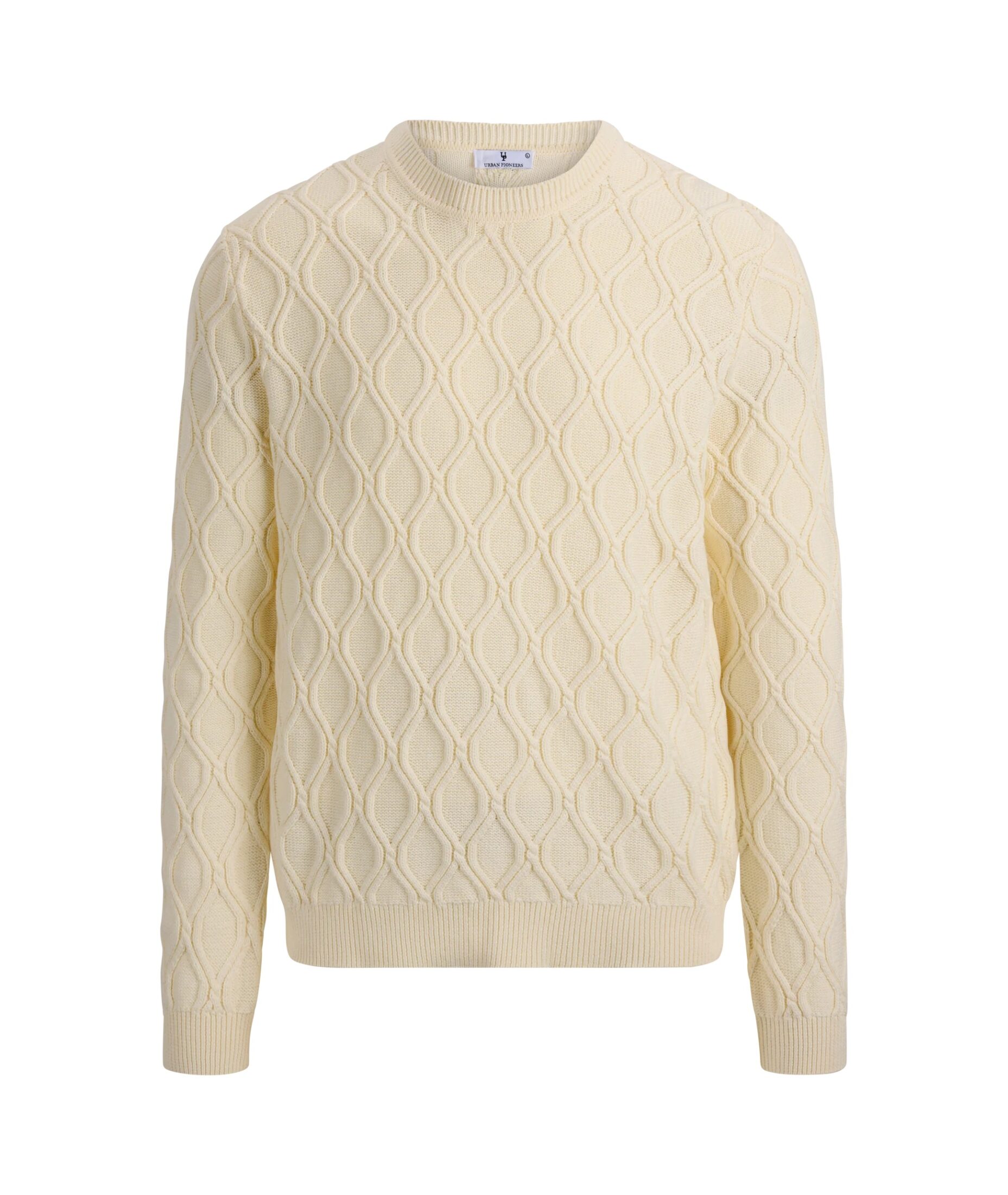 Cosimo Sweater fra Urban Pioneers. En stilren strikkegenser med strukturert mønster som gir et sofistikert uttrykk. Den myke kvaliteten og klassiske passformen gjør den både komfortabel og anvendelig. Perfekt til lag-på-lag eller som et rent statement i garderoben.