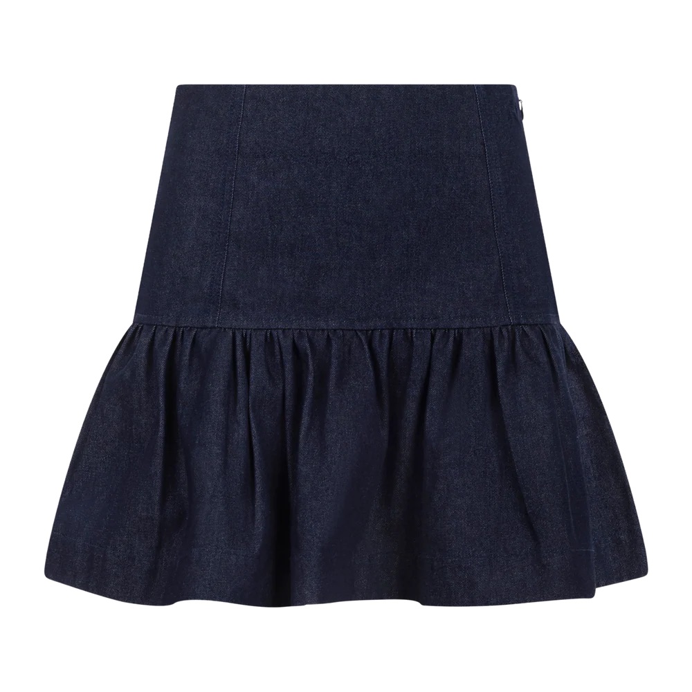 Dove Skirt fra Urban Pioneers. Et feminint denimskjørt med strukturert passform og dekorativ rysjekant. Den myke bomullskvaliteten gir både komfort og et moderne uttrykk. Perfekt for å tilføre antrekket en leken, men stilren touch.