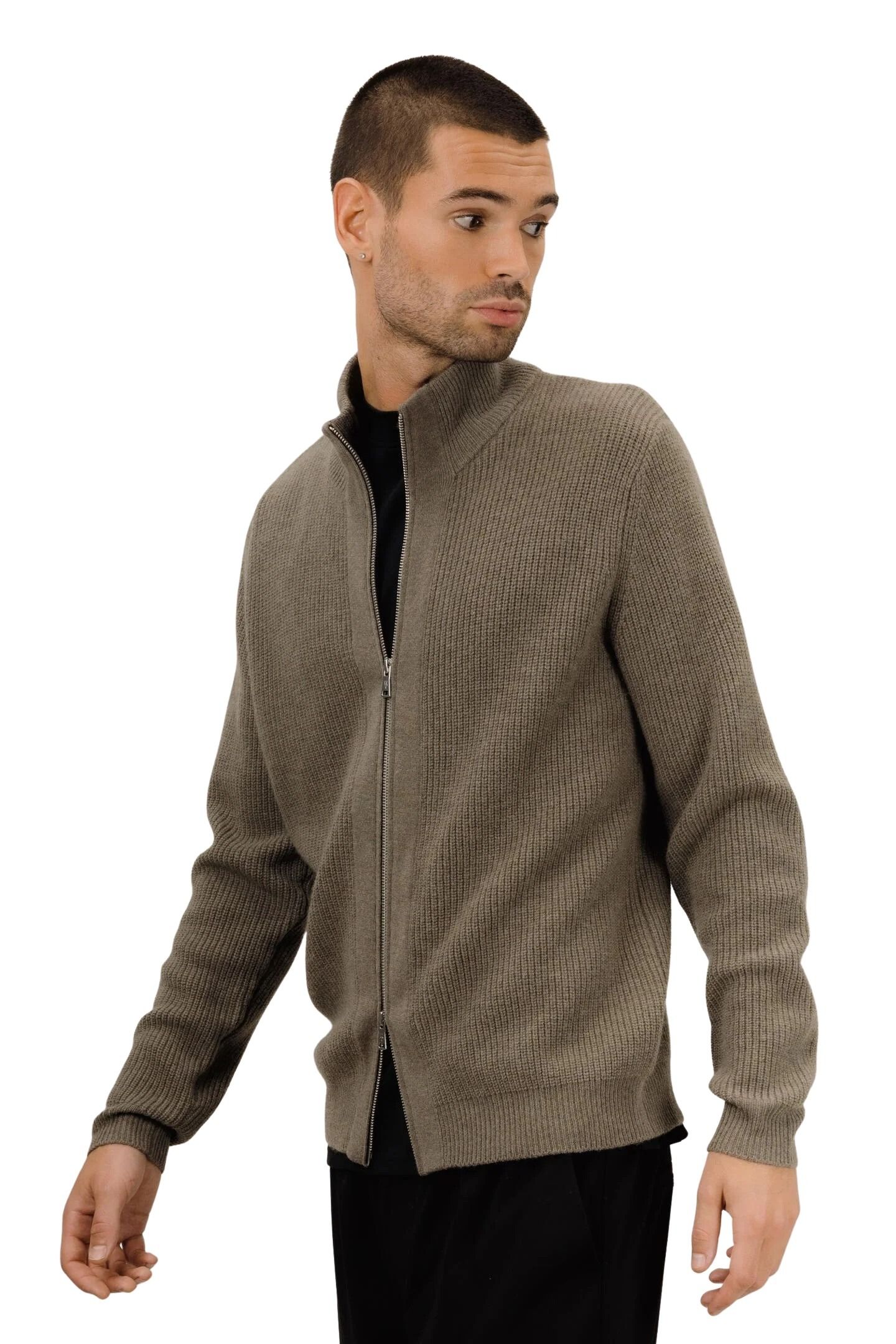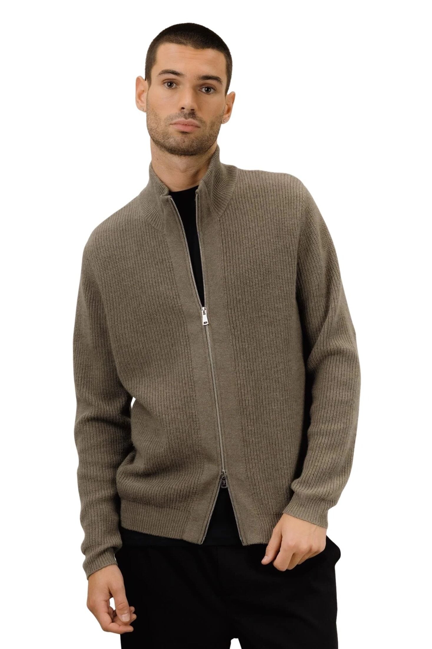 Cardigan til herre fra Urban Pioneers. En tidløs favoritt laget i 100% merinoull, som gir god varme, mykhet og pusteevne. Den ribbestrikkede teksturen tilfører et sofistikert preg, mens glidelåslukkingen gjør den både praktisk og allsidig. Perfekt til lag-på-lag styling på kjølige dager, men like fin å bruke alene.