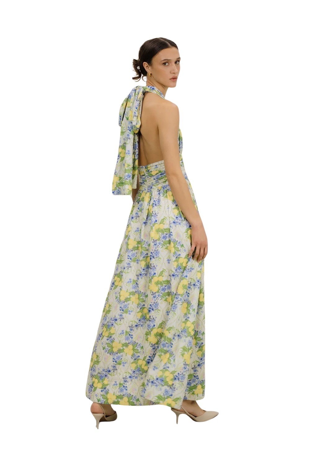 Rosso Dress fra Urban Pioneers. En iøynefallende maxikjole med friskt sitrusinspirert print og feminin silhuett. Den lette kvaliteten og det luftige fallet gir nydelig bevegelse og en sommerlig følelse. Perfekt til både varme dager og elegante anledninger.