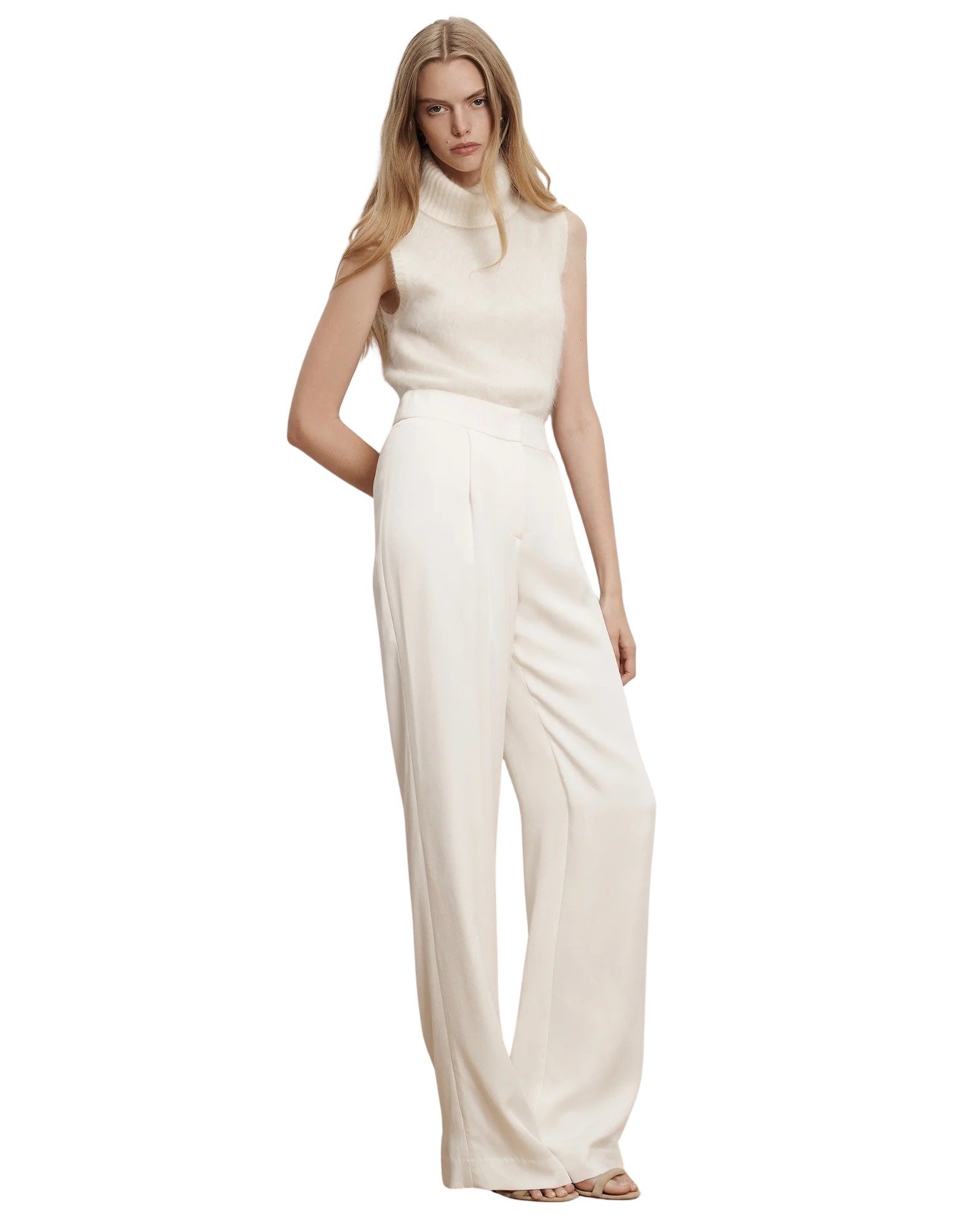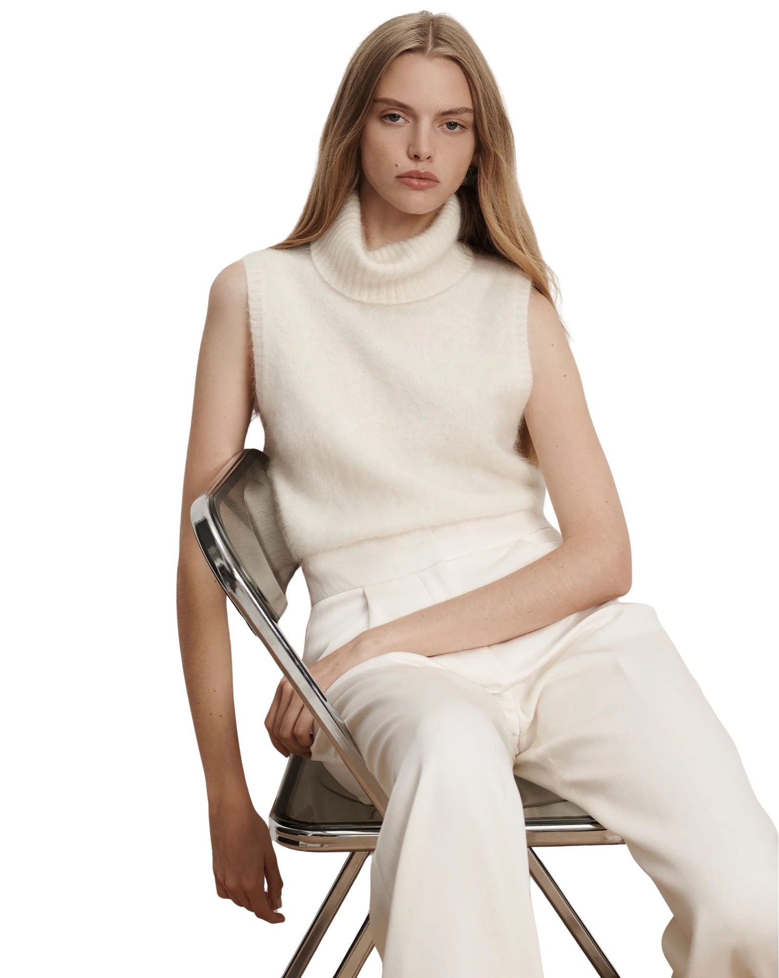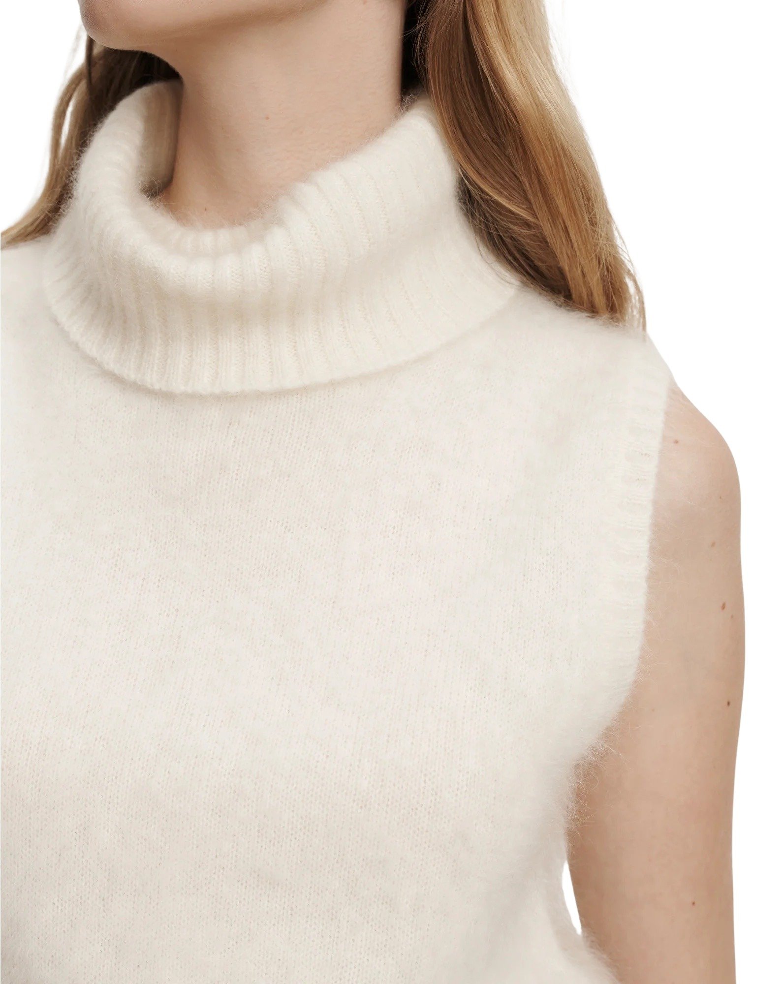 Mazzy Brushed Cashmere Sleeveless Sweater – Hvit