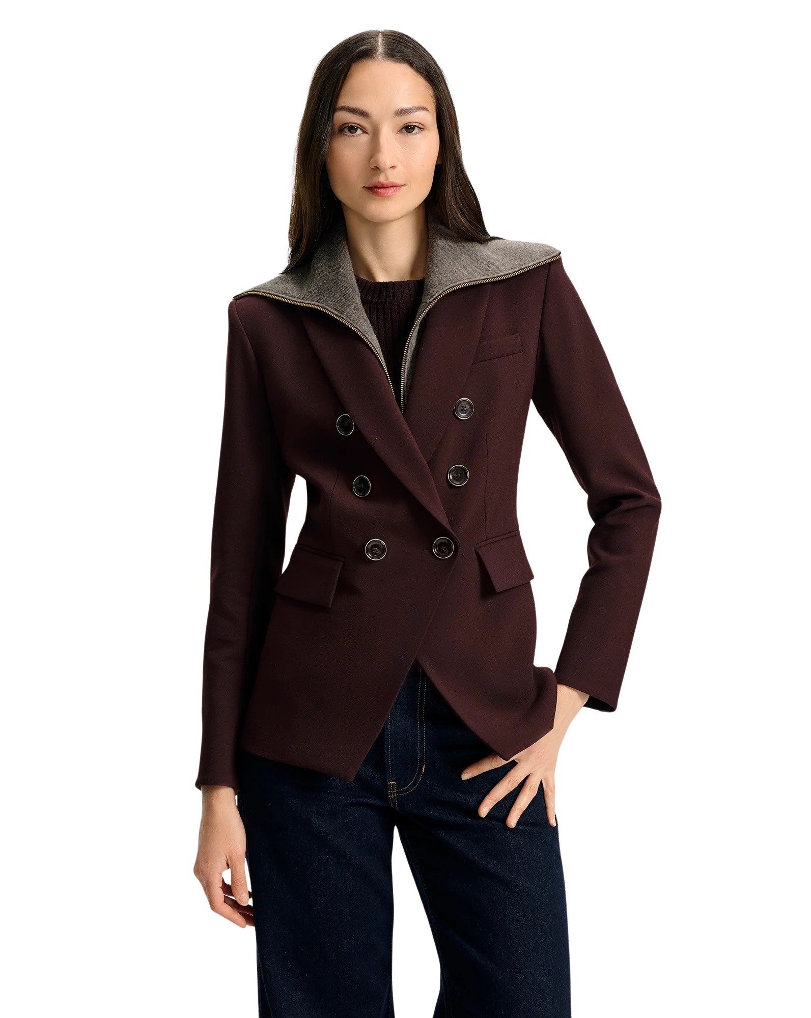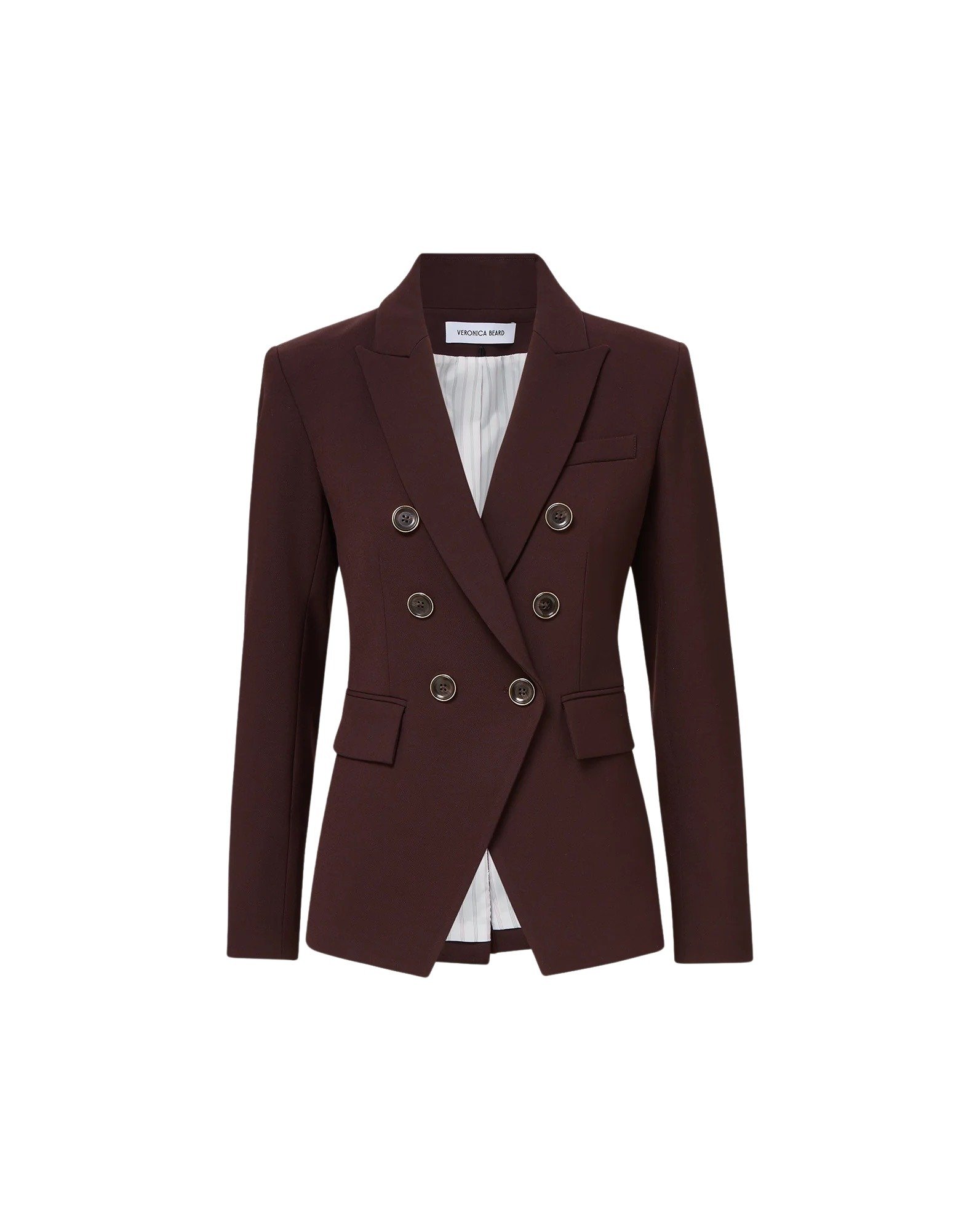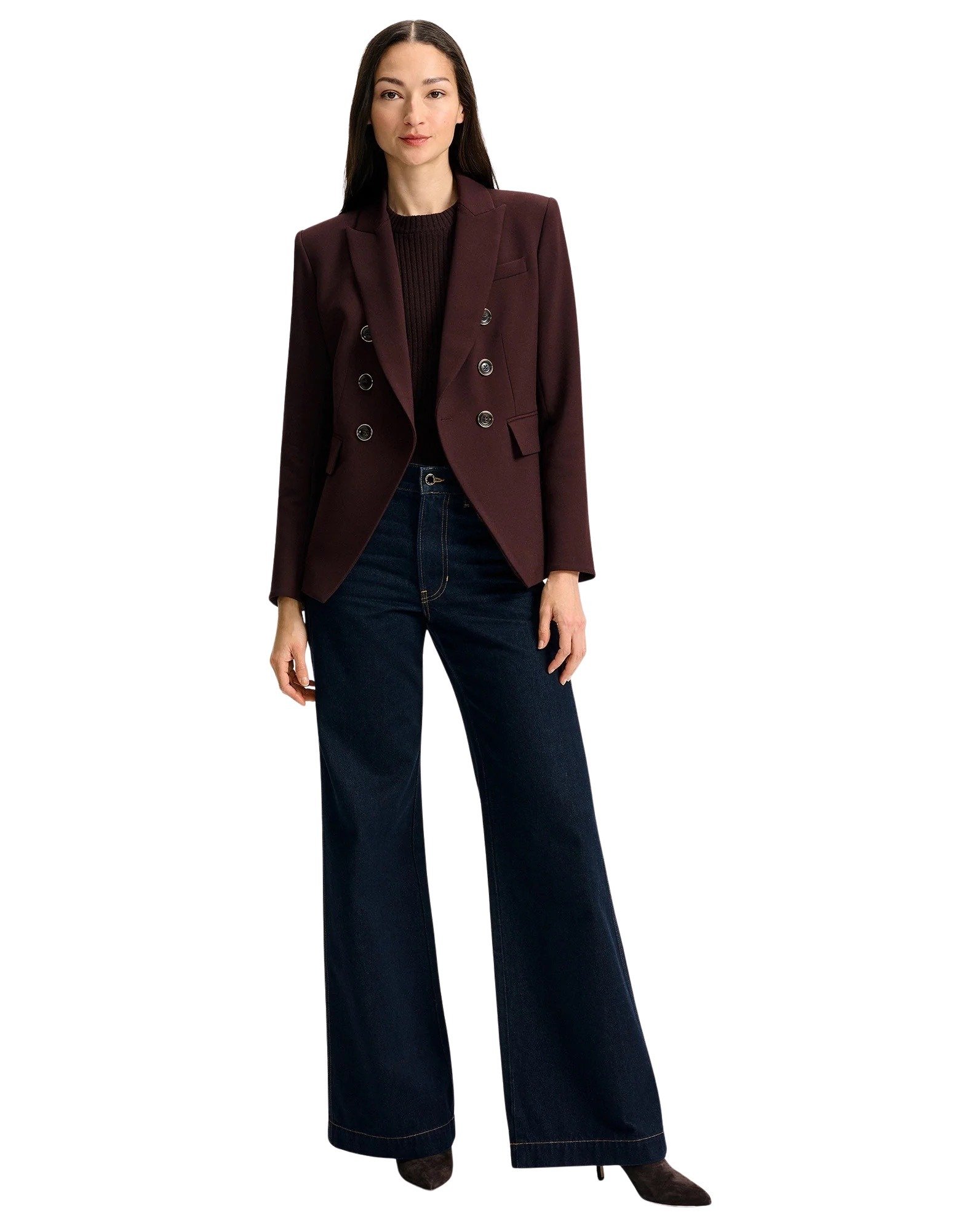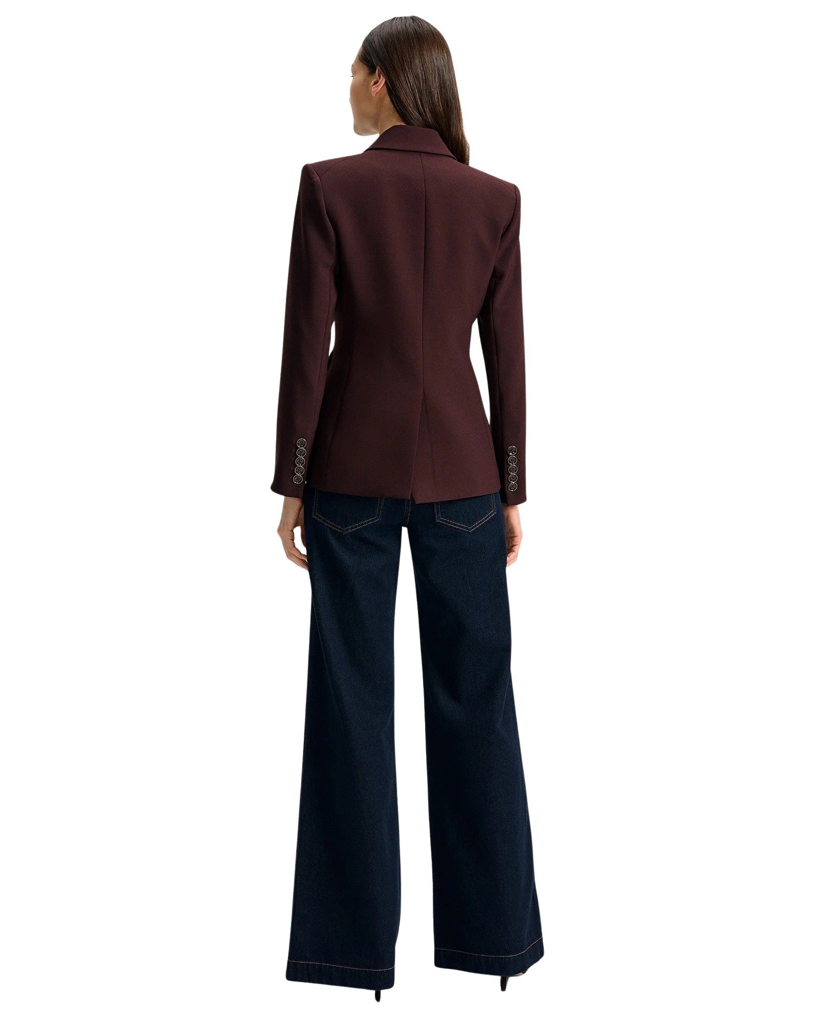 Blazer til dame fra Veronica Beard. En tidløs blazer i en dyp rødbrun nyanse. Laget i et lett, stretchy stoff som gir både komfort og en flatterende, skreddersydd passform. Det klassiske dobbeltspente designet og gullknappene tilfører et sofistikert preg. Style den med den matchende Arte Kick-Flare Pant for et elegant sett.