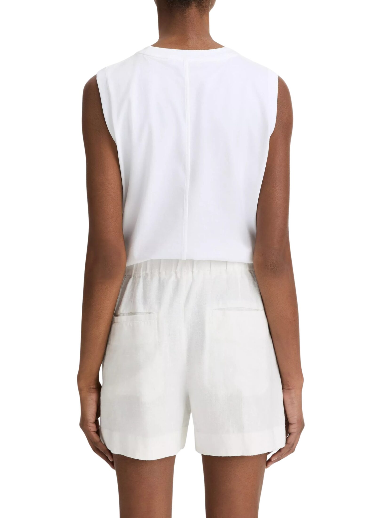 Shorts til dame fra Vince. Shortsen kombinerer et avslappet uttrykk med en raffinert finish, perfekt for varme dager. Laget i et lett og pustende materiale med subtil struktur som gir både komfort og et naturlig, stilrent preg. En allsidig favoritt som enkelt kan styles opp eller ned.