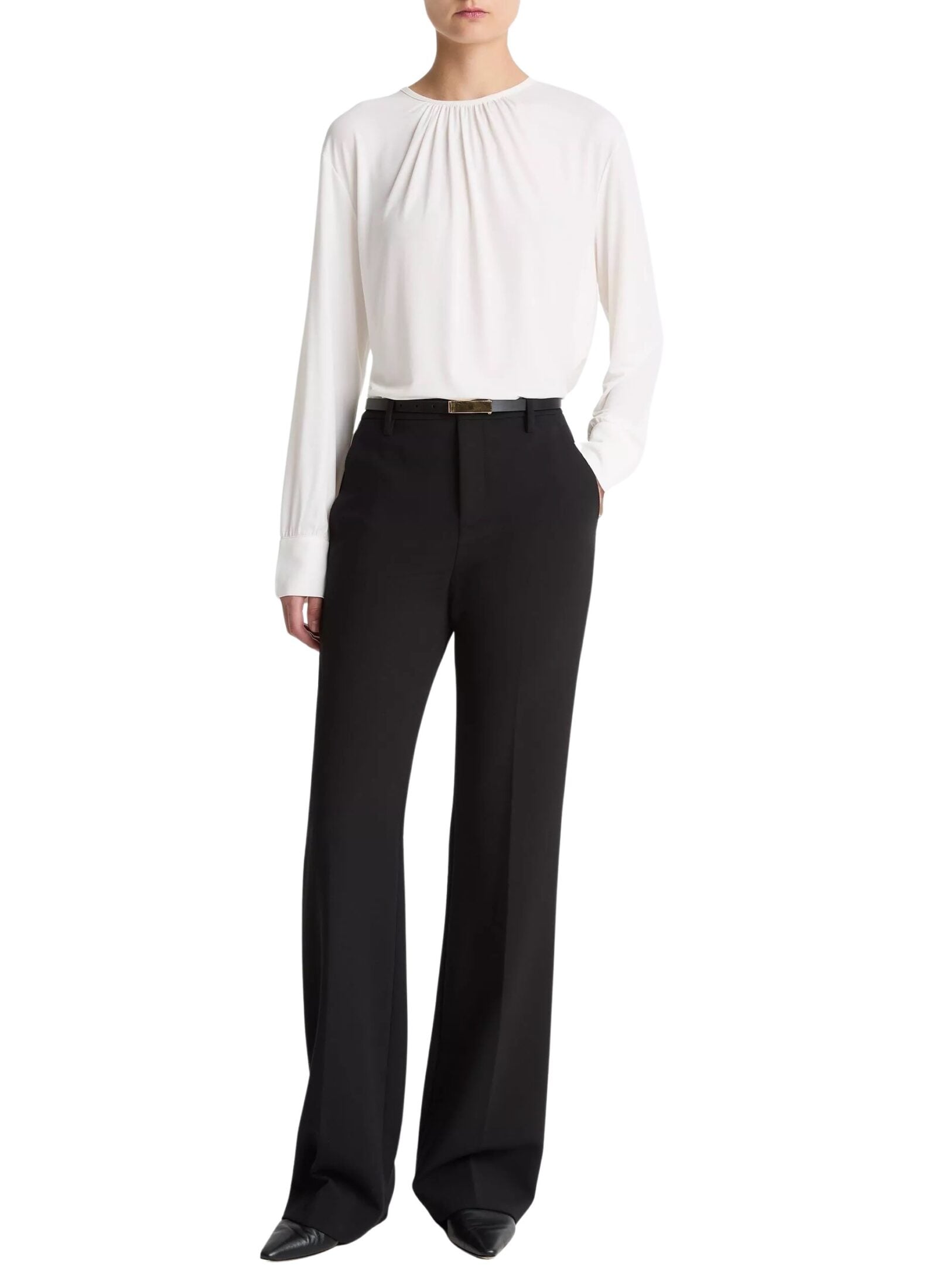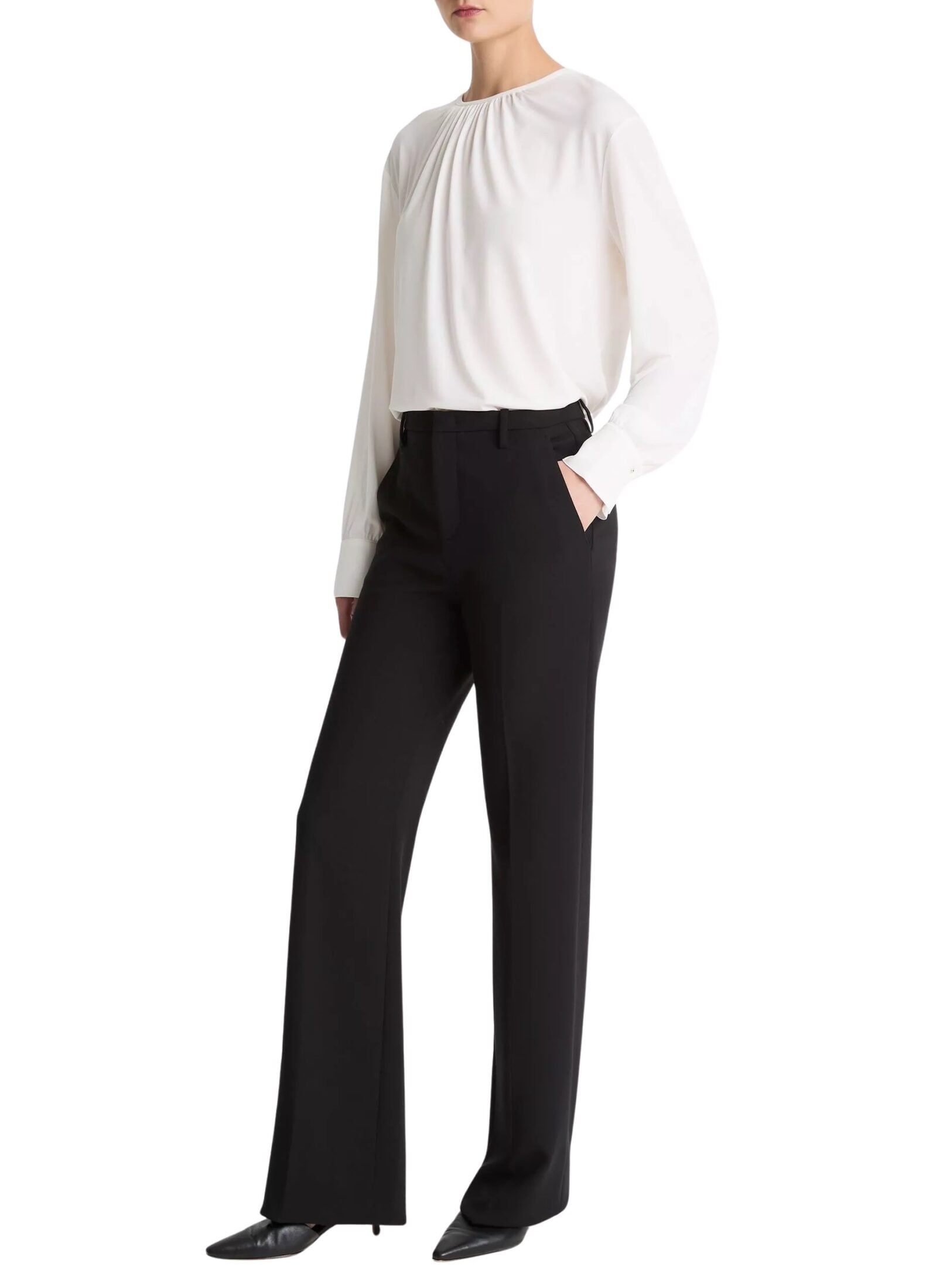 Dressbukse til dame fra Vince. Skreddersydd bukse med mellomhøy midje og utsvingte ben. Laget av et mykt, skulpturert stretchstoff som beveger seg med kroppen.