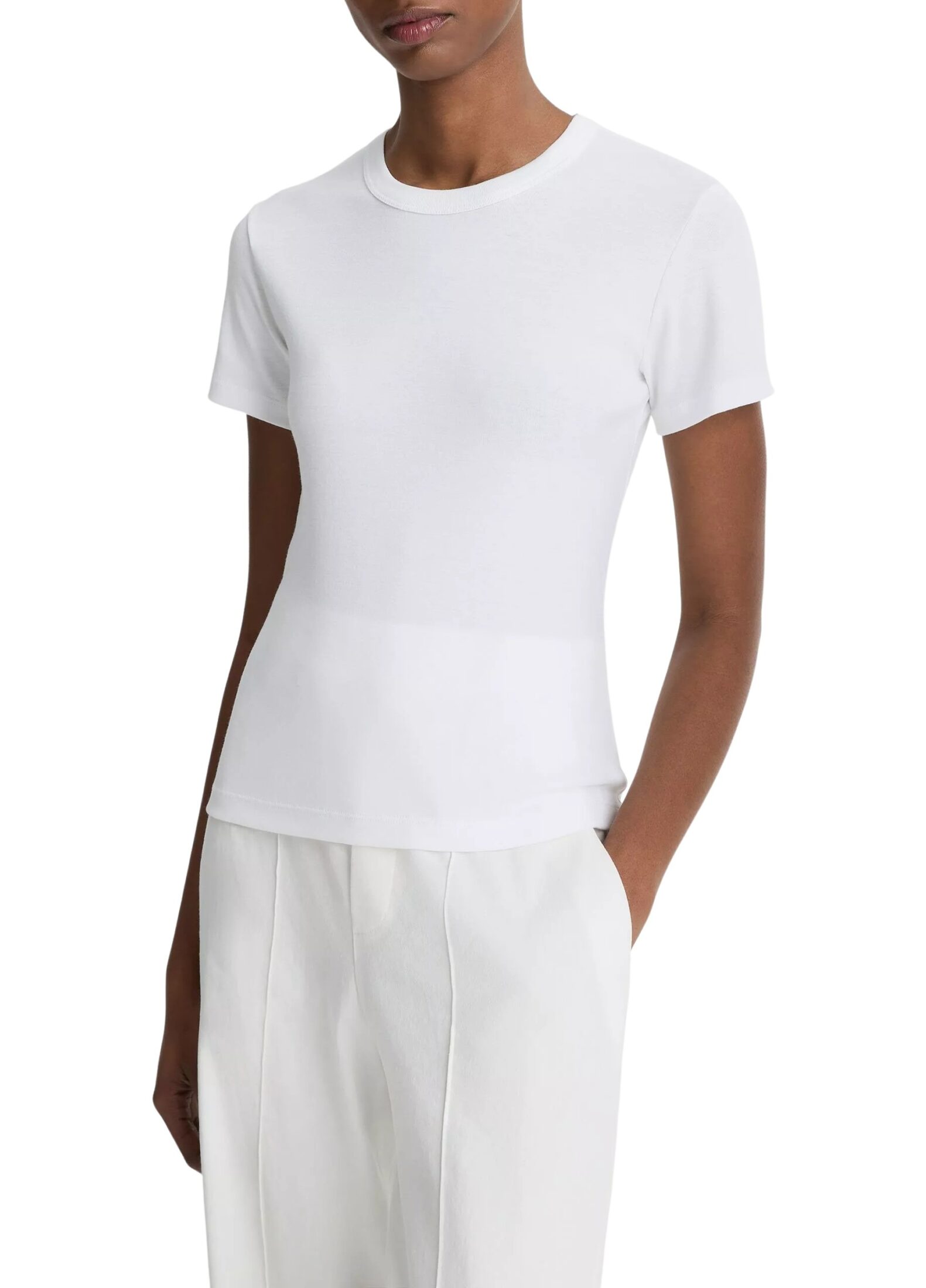 T-skjorte til dame fra Vince. En feminin, lett innsvingt passform inspirert av 90-tallet, som gir et rent og moderne uttrykk. Laget i en myk og slitesterk blanding av pima-bomull og modal, som føles silkemyk mot huden og holder fasongen vask etter vask. En perfekt basefavoritt som løfter ethvert antrekk med enkel eleganse.