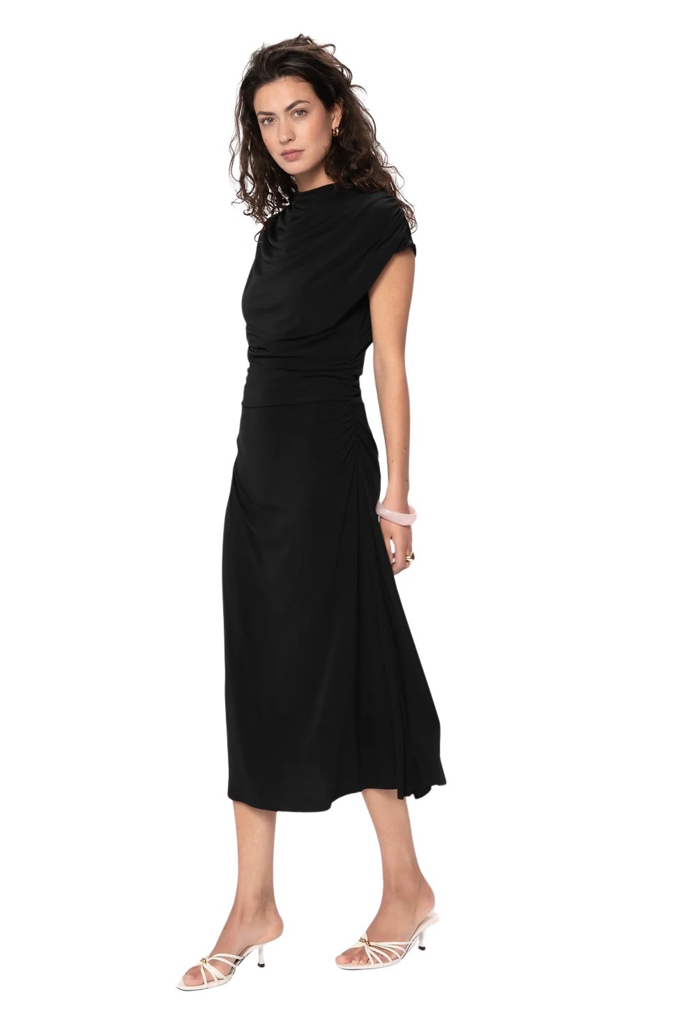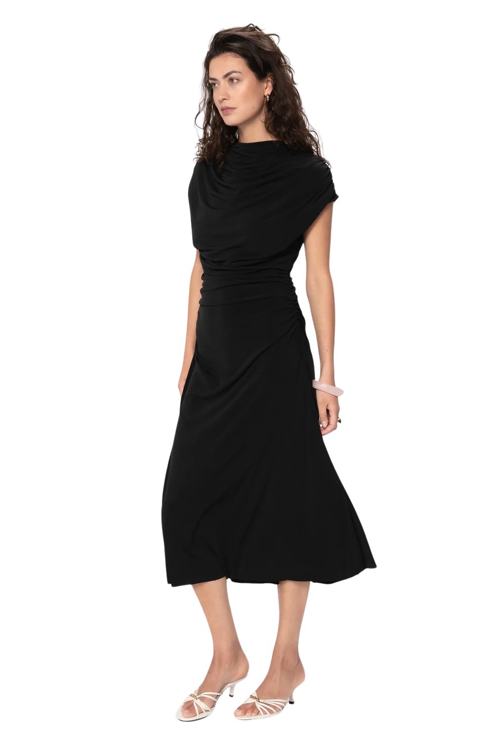 Kjole til dame fra VIVEH. Ermeløs midikjole laget i myk, fallende jersey som gir en elegant og avslappet silhuett. Draperingen foran former overdel og hals på en flatterende måte, mens skjørtet faller lett langs kroppen. Et allsidig plagg som fungerer like godt til hverdags som til mer pyntede anledninger.