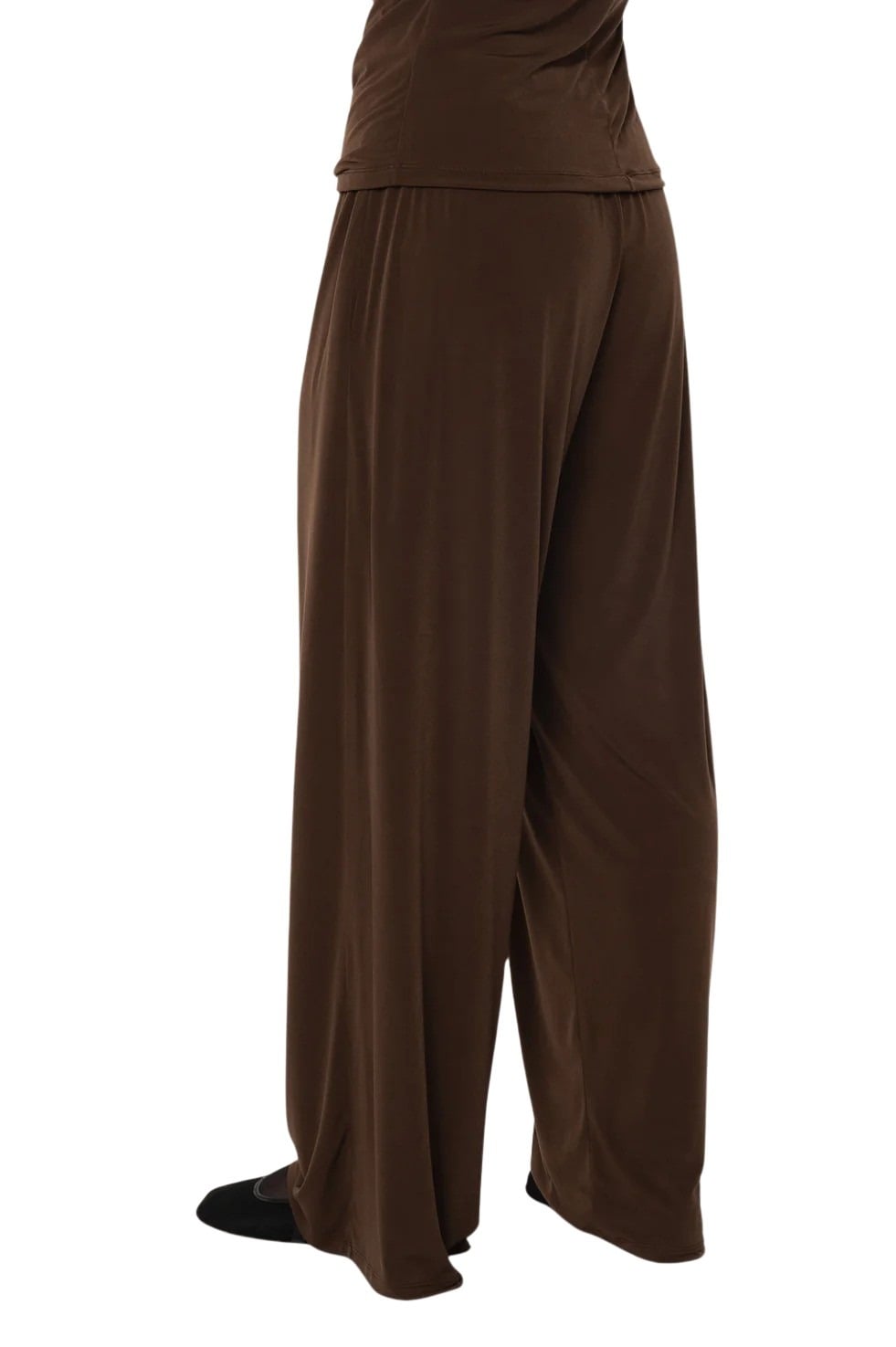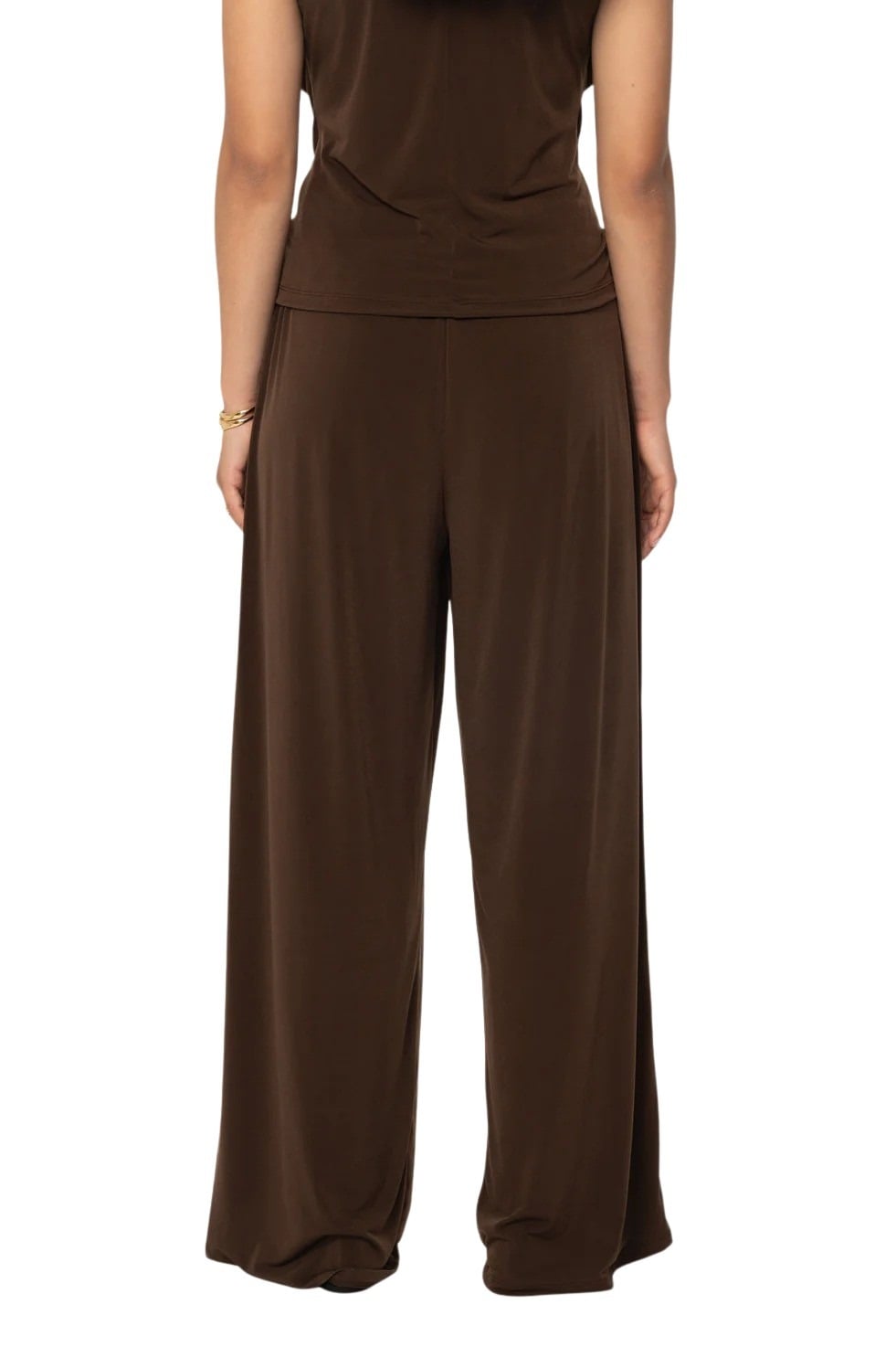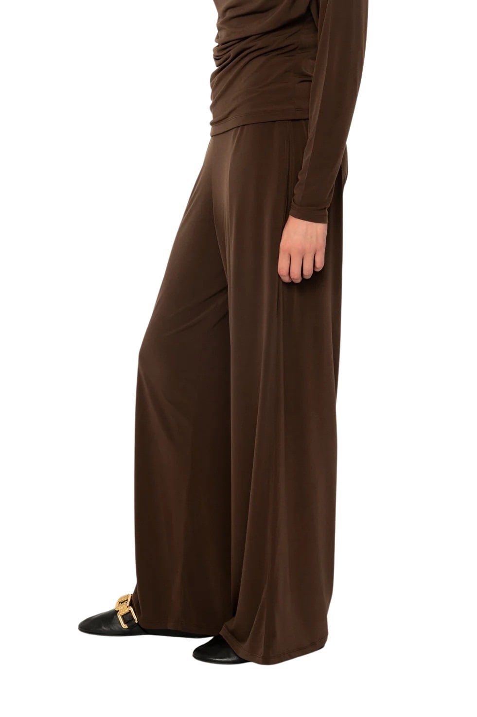 Bukse til dame fra VIVEH. Komfortable jerseybukser i brun med vide ben og en flatterende høy midje. Den elastiske linningen gir en myk og behagelig passform som følger kroppen uten å stramme. Et stilrent baseplagg som enkelt kan styles med de matchende toppene for et elegant helhetsuttrykk.