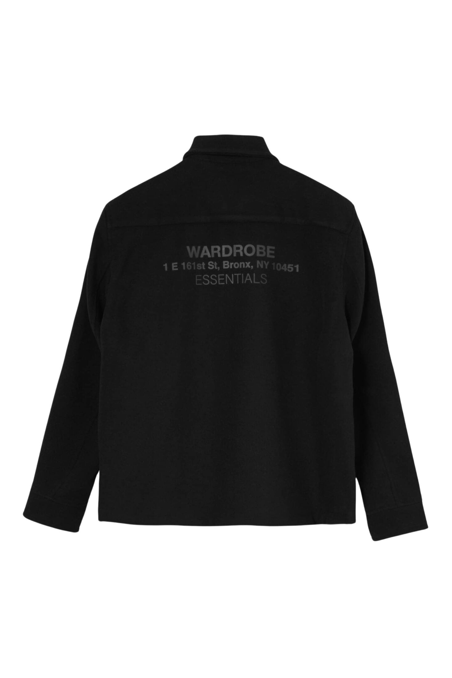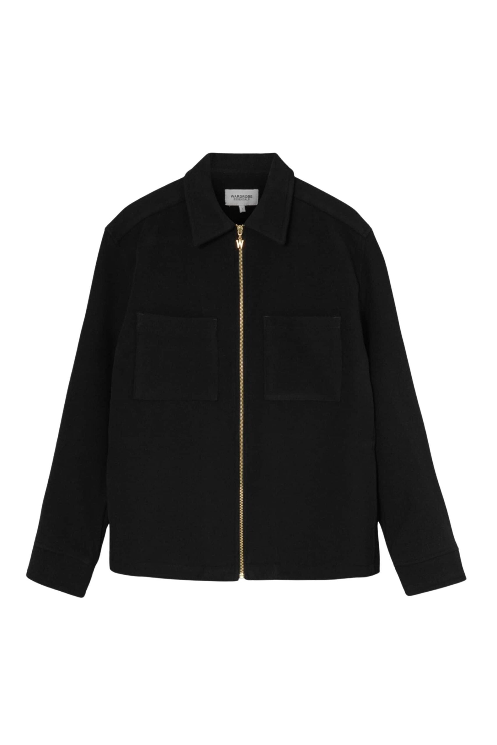 Sort overshirt til herre fra Wardrobe Essentials. Jakken kombinerer et minimalistisk uttrykk med eksklusive detaljer som gullfarget glidelås og rene linjer. Med subtil logo på ryggen og en tidløs passform er den et allsidig plagg som løfter enhver garderobe.