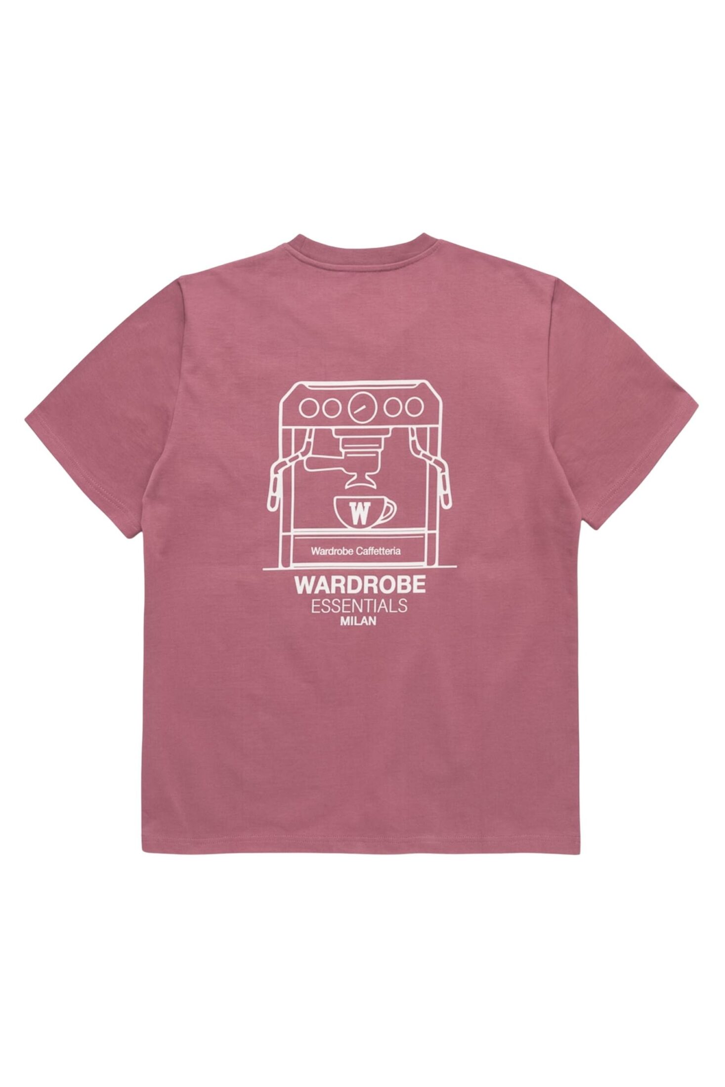 T-skjorte til herre fra Wardrobe Essentials. T-skjorten kombinerer et friskt uttrykk med minimalistisk frontlogo og et unikt kaffemaskin-motiv på ryggen. Den myke bomullen og stilrene passformen gjør den til et perfekt statement-plagg for både hverdags og helg.