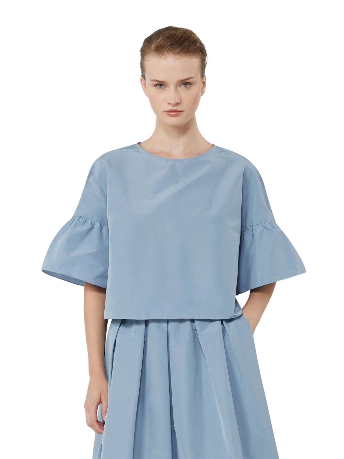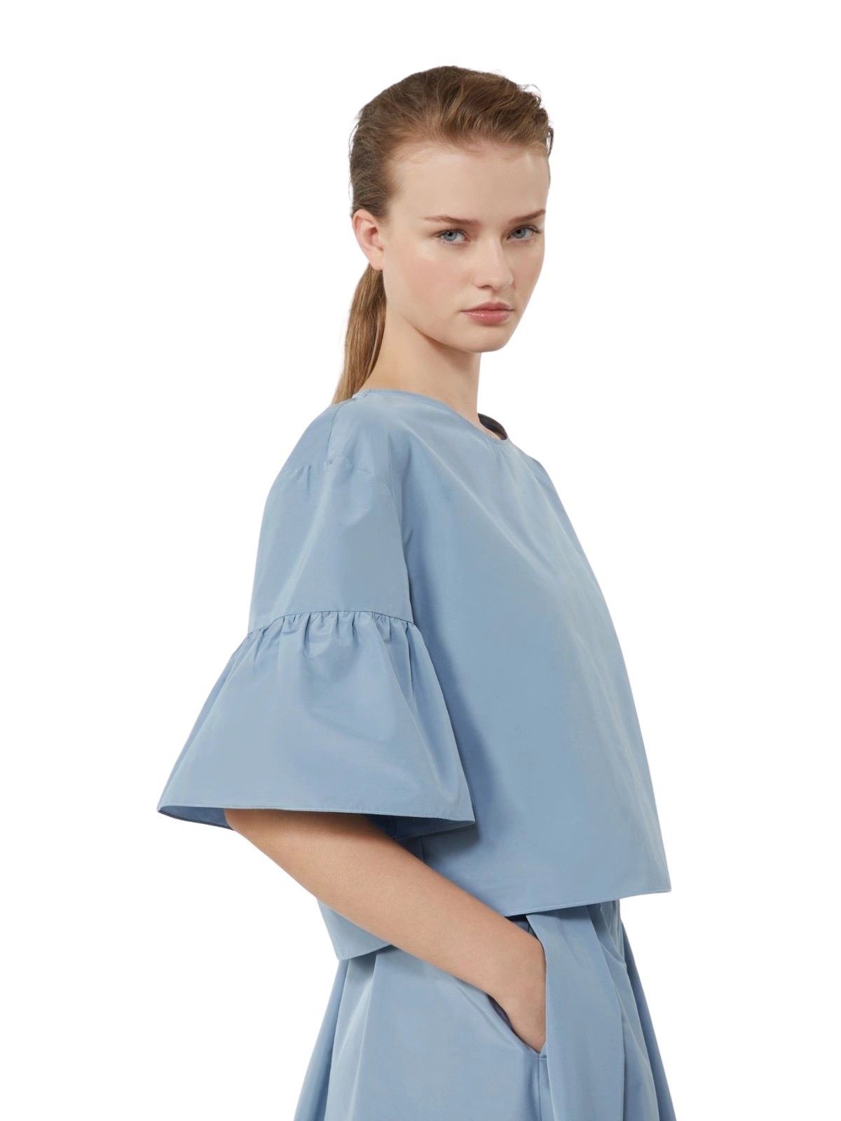 Cotton Taffeta Cropped Blouse – Lyseblå
