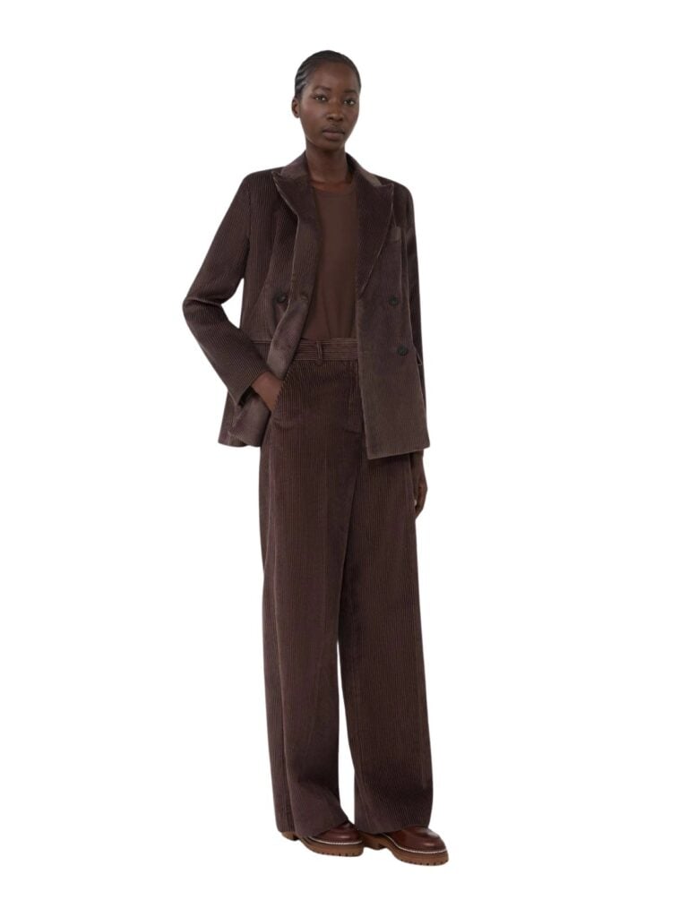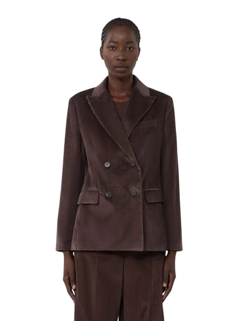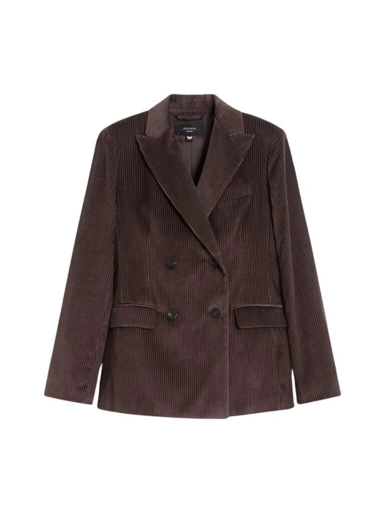 Blazer til dame fra Weekend Max Mara. Elegant dobbeltspent blazer i ren bomullskord med en lett utsvingt og feminin silhuett. Designet har spisse slag, ermer med knapp i mansjetten og en klassisk lukking med synlige knapper foran. Brystlomme og lommer med klaff tilfører et tidløst uttrykk. Midtsplitt bak gir bevegelsesfrihet og en flatterende passform. Bruk den sammen med Wide-Leg Corduroy Trousers for et fullført antrekk.