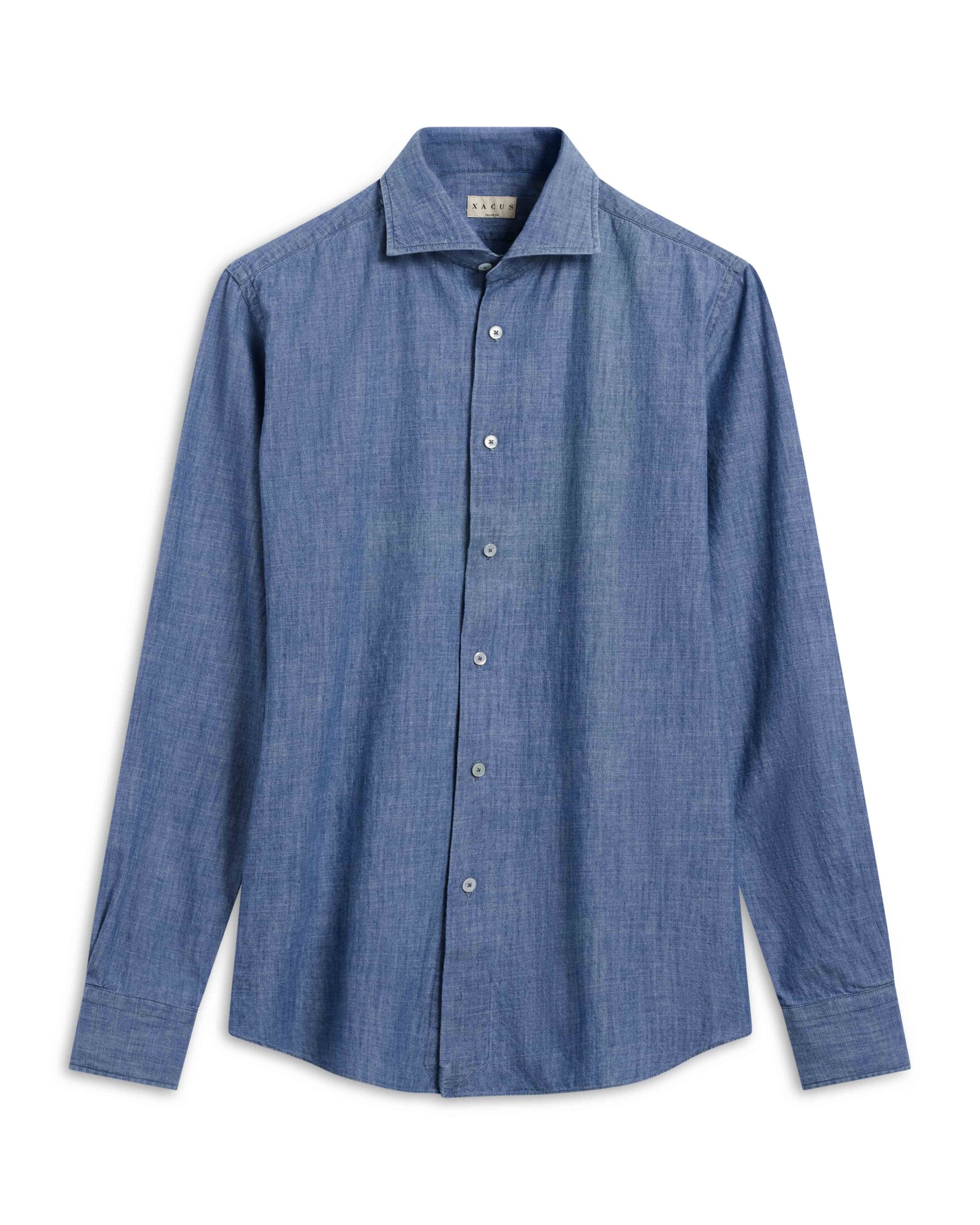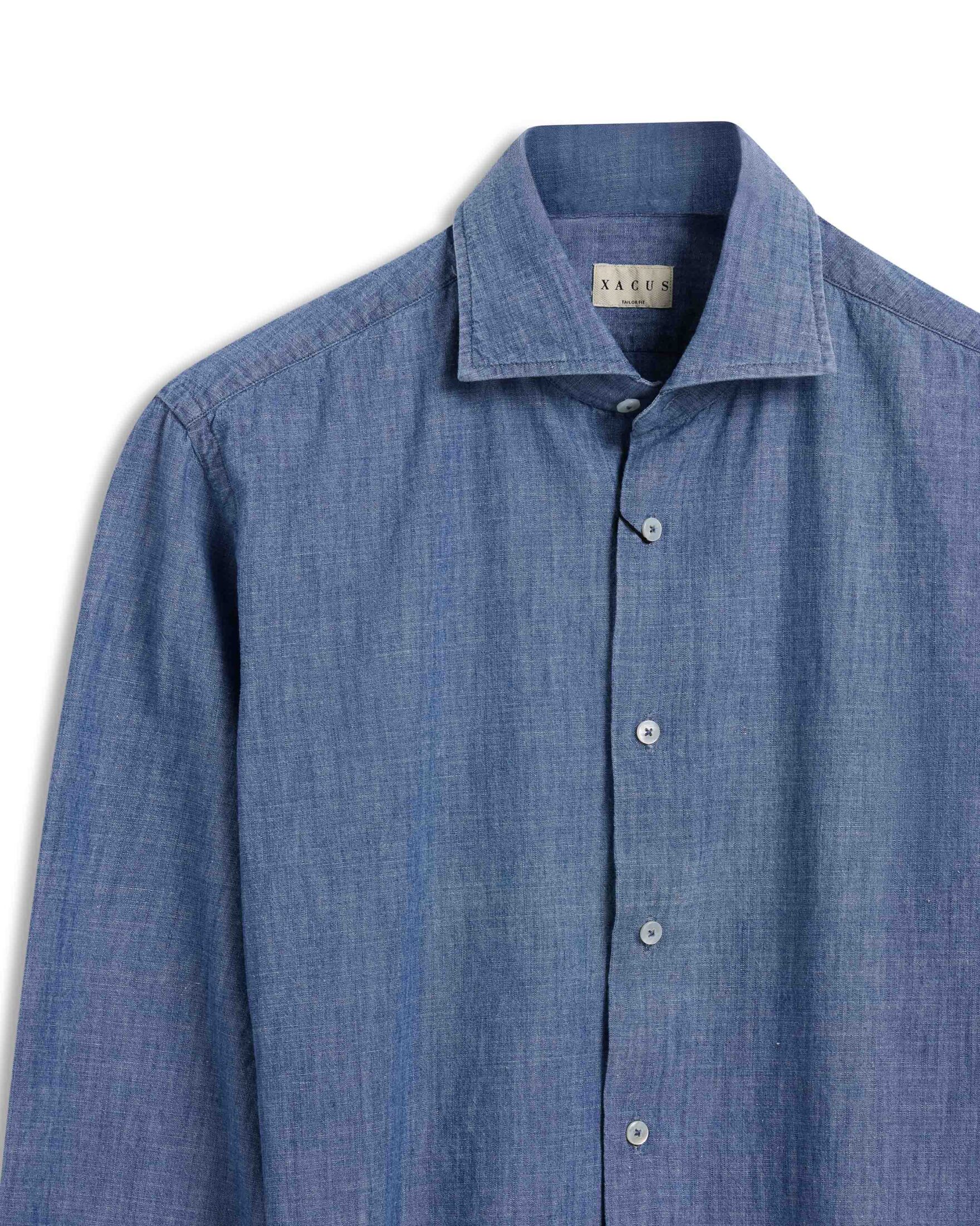 Chambray Shirt Tailor Fit fra Xacus. Laget i myk og lett bomull som gir en behagelig følelse hele dagen. Det klassiske chambray-stoffet gir et avslappet, men stilrent uttrykk. Den smale passformen sørger for en moderne silhuett som fungerer like godt til blazer som til mer uformelle antrekk.