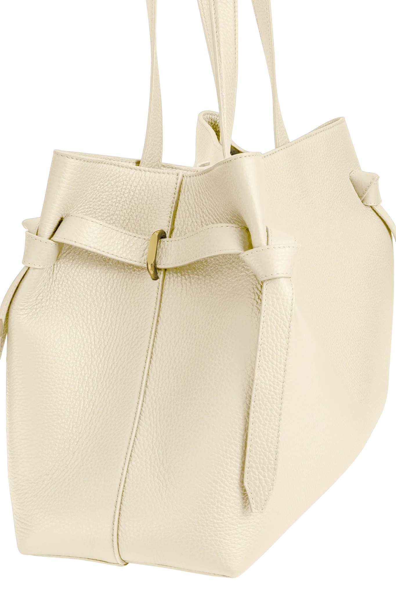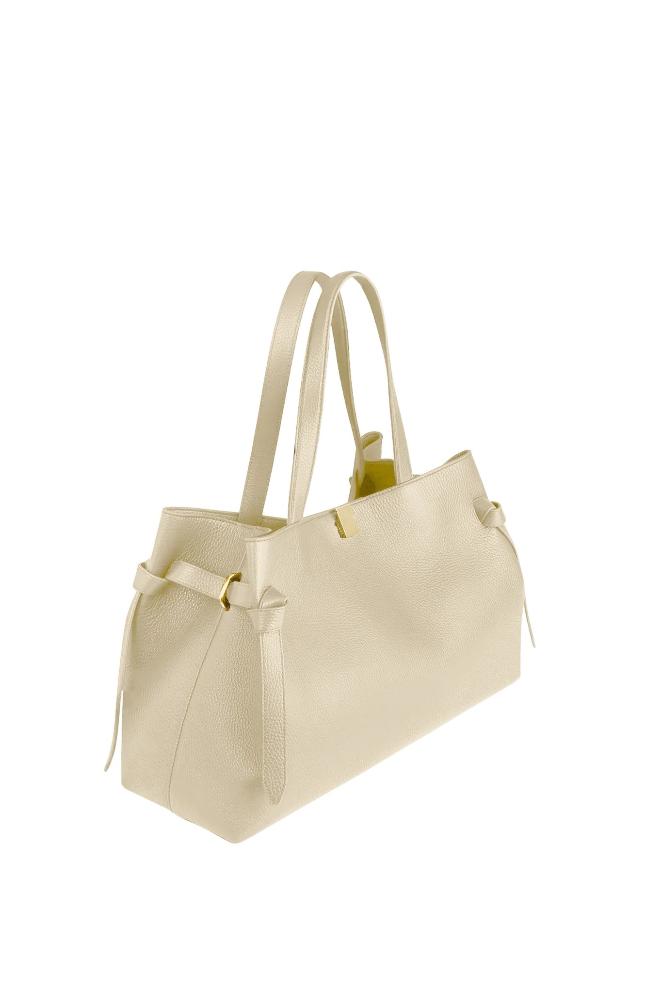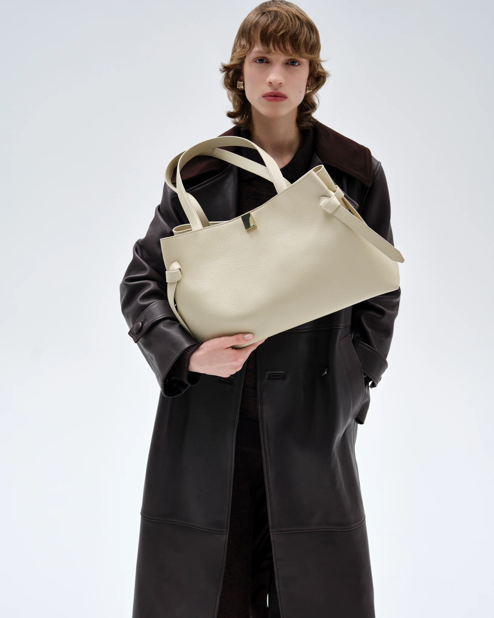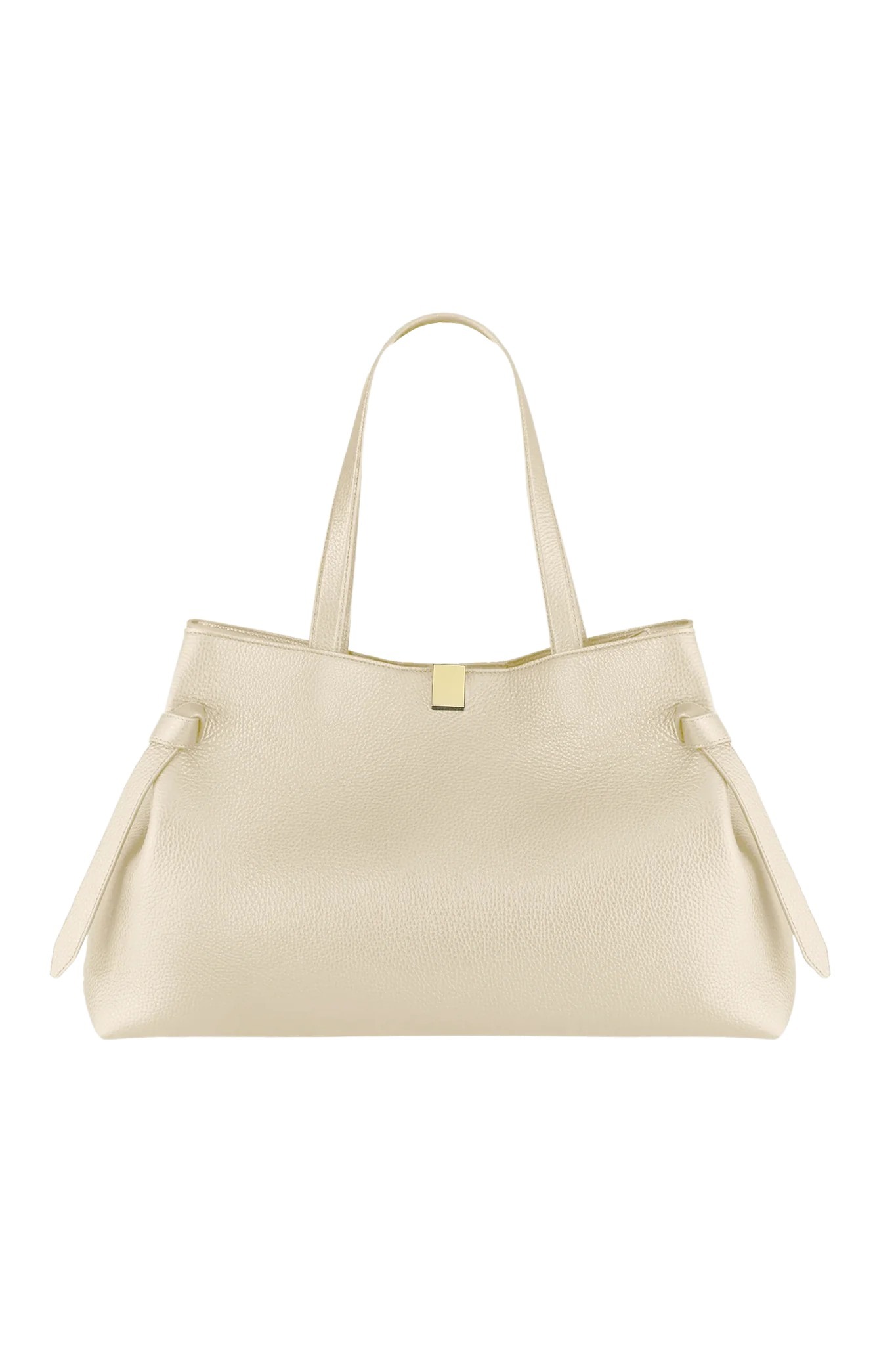 Elegant og allsidig veske fra Yuzefi i lyst skinn. Med sitt romslige interiør og strukturerte design er det den perfekte balansen mellom stil og funksjonalitet for daglig bruk. Vesken lukkes med magnet og bæres med håndtak. Håndlaget av håndverkere i Spania.