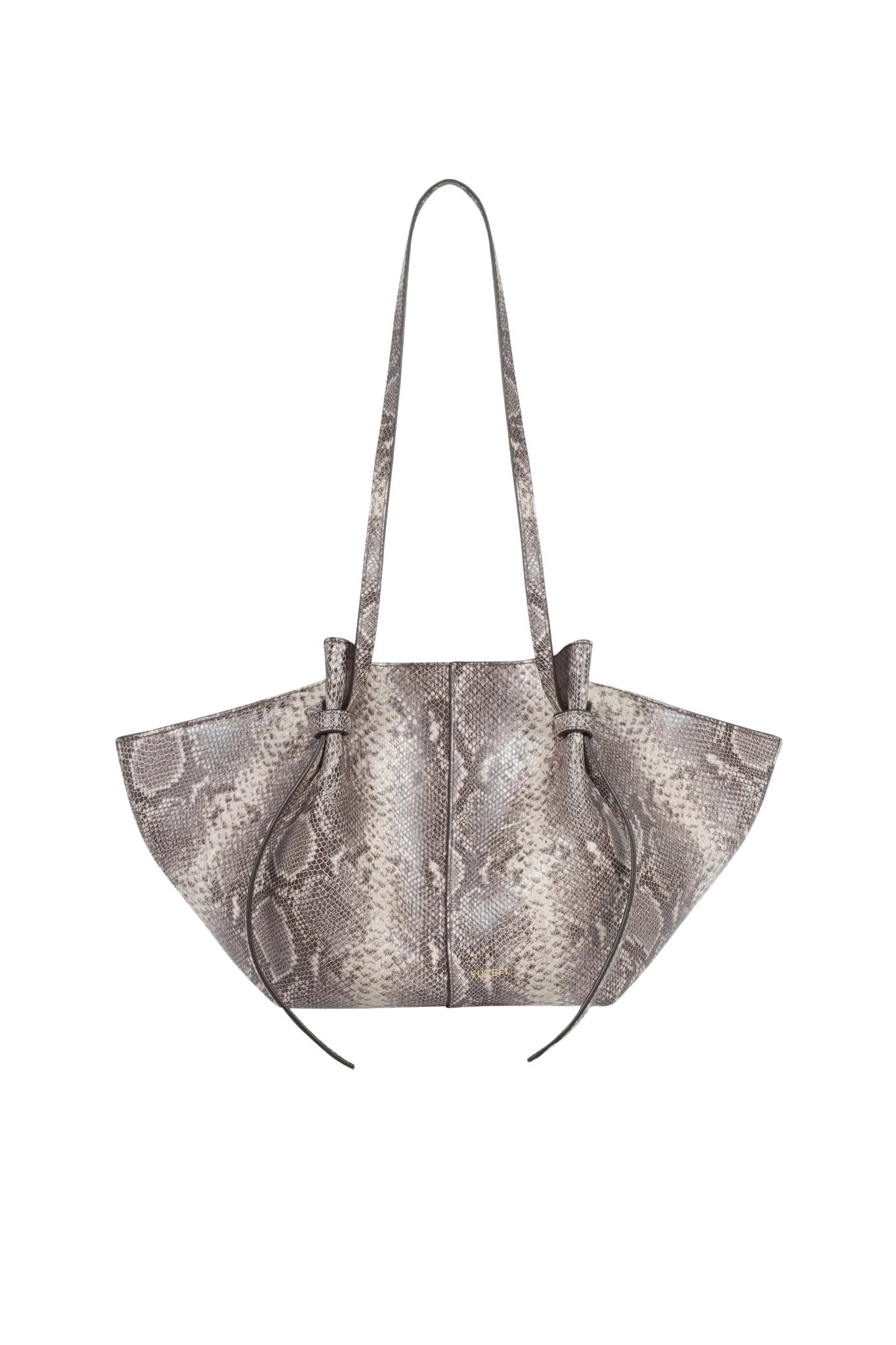 Ikonisk veske fra Yuzefi. Mindre utgave av deres hverdagsveske med karakteristiske organiske kurver, folder og knuter. Utført i eksklusivt skinn med et sofistikert slangemønster som løfter ethvert antrekk. Håndlaget av håndverkere i Spania.