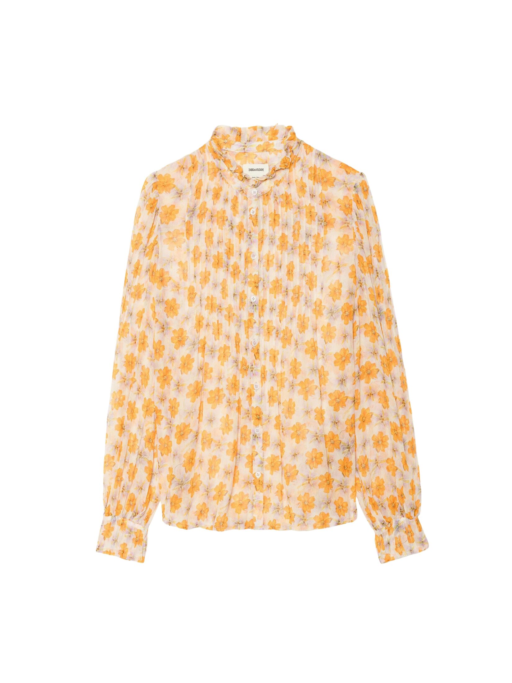 Bluse til dame fra Zadig & Voltaire, laget i lett og luftig chiffon med blomsterprint. Den avslappede silhuetten kombinerer et feminint uttrykk med en bohemsk følelse, mens knappelukkingen og de lange ermene gir et tidløst preg. Perfekt til både hverdags og feriebruk.